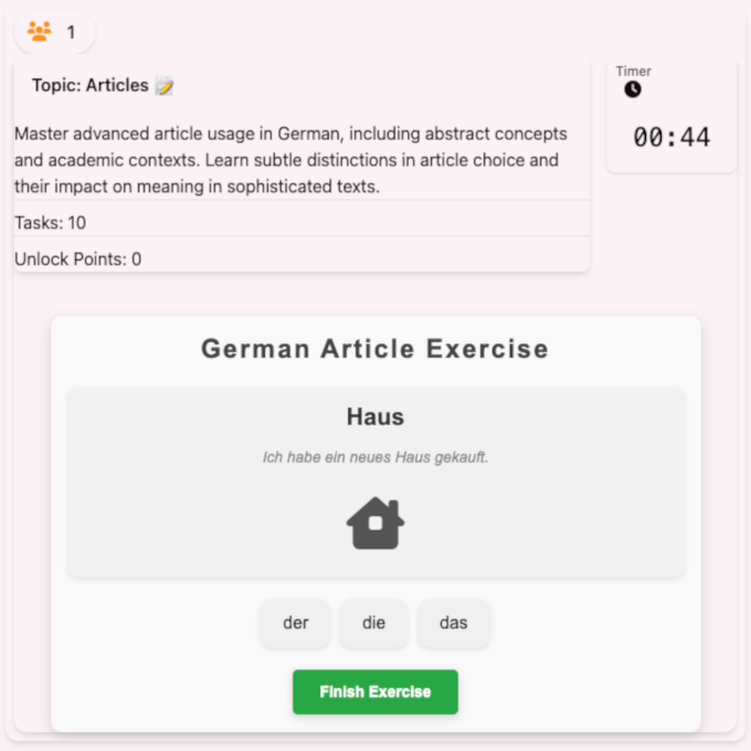 Dive deep into German articles with this interactive course. Learn to confidently use der, die, and das through pattern recognition, contextual learning, and practical exercises. Features progressive difficulty levels and real-world examples.